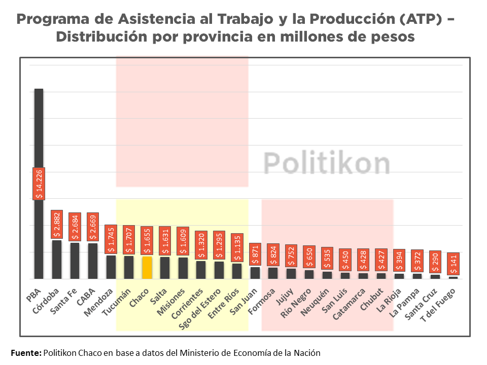 Un informe de la consultora Politikon Chaco en base a datos oficiales, señala que el impacto que tuvo el programa de Asistencia al Trabajo y la Producción (ATP) de asistencia oficial en el pago de parte de los salarios de asalariados registrados del sector privado.