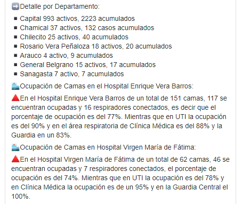 Información sanitaria de Catamarca al miércoles 2 de setiembre