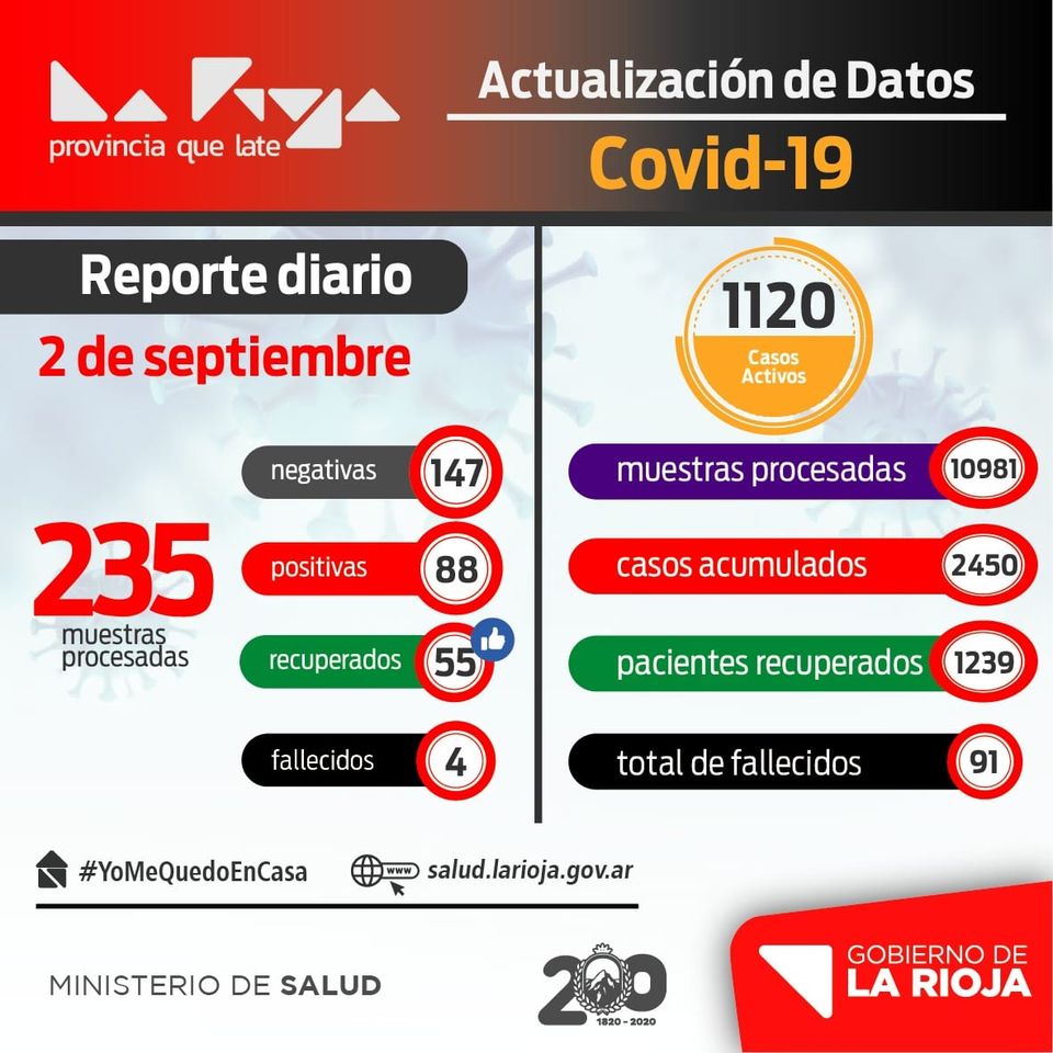 Información sanitaria de La Rioja al miércoles 2 de setiembre