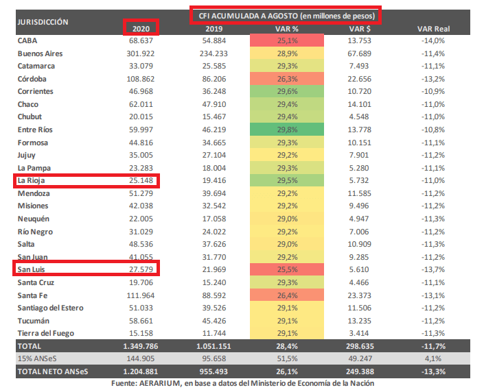 Coparticipación hasta agosto: La Rioja $25.148 millones; San Luis $27.579 millones