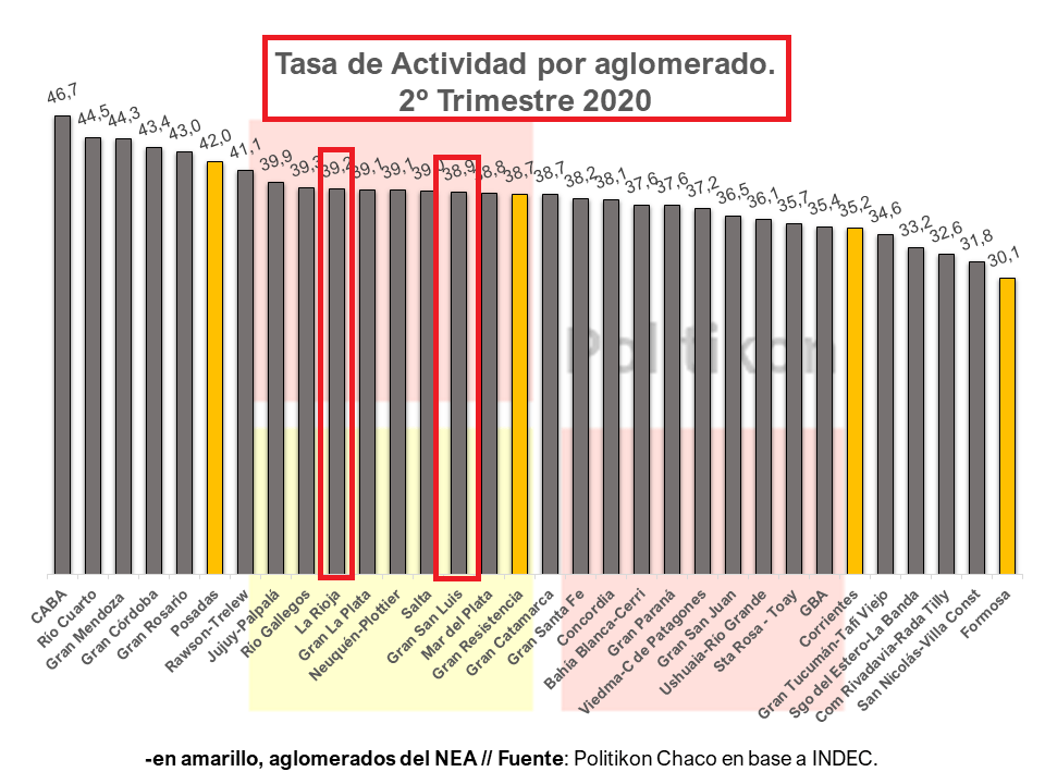 Tasa de actividad al segundo trimestre: La Rioja 39,2%; San Luis 38,9%