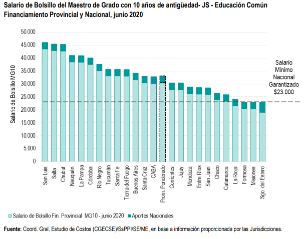 La Rioja es una de las provincias con el salario bruto del maestro de grado con 10 años de antiguedad a junio de 2020 más bajo del país, según un estudio de la Coordinación General de Estudio de Costos del Sistema Educativo dependiente del Ministerio de Educación de la Nación.