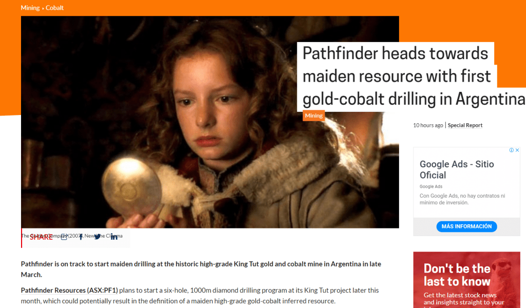 Pathfinder está en camino de comenzar la perforación inaugural en la histórica mina de oro y cobalto King Tut de alta ley en Argentina a fines de marzo.