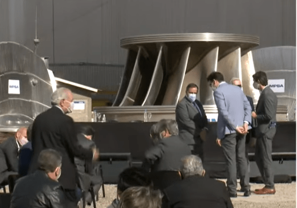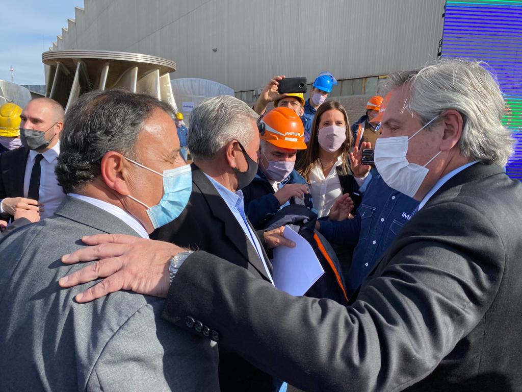 Este jueves, el gobernador Ricardo Quintela viajó a Mendoza para participar de la estatización de la empresa IMPSA que fue quien entregó los primeros aerogeneradores del emprendimiento riojano. El acto fue presidido por Fernández y el riojano llegó junto al golpeado Luna Corzo y al titular del Parque, Parmigiani.