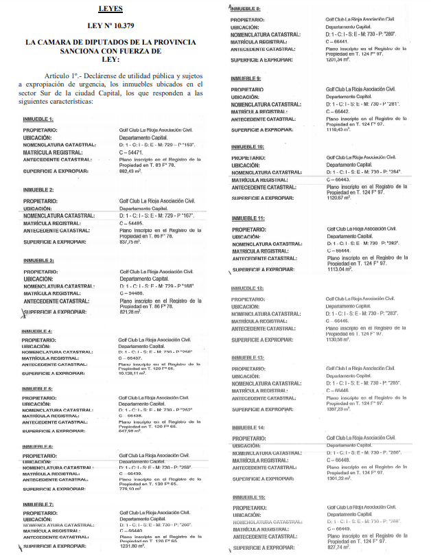 A través del decreto 816 del 27 de mayo de 2021, Quintela avaló la norma que declaró de utilidad pública y sujetos a expropiación de urgencia, los inmuebles ubicados en el Golf Club La Rioja.