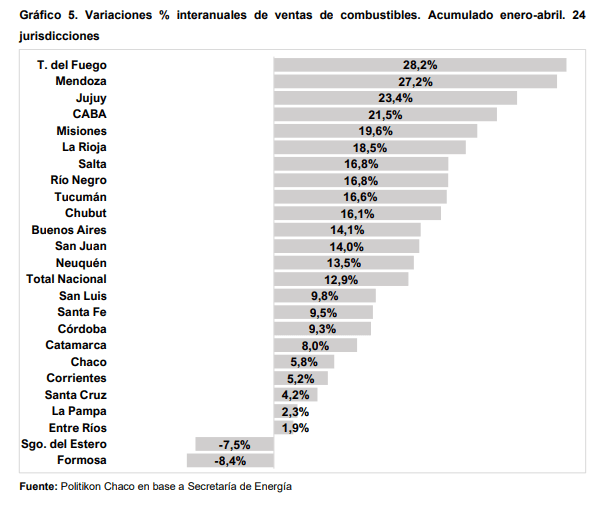En la comparación interanual, todas las jurisdicciones del país mostraron incrementos en la venta de combustibles, por lo detallado previamente en relación a la base de comparación. Sin embargo, hay
