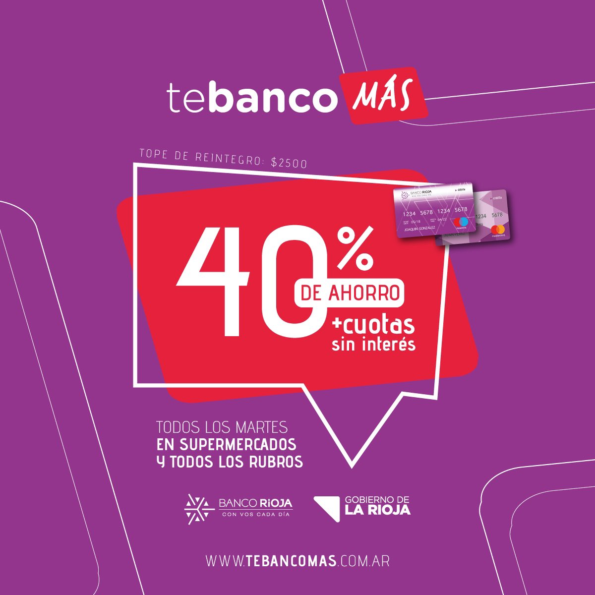 El programa incluirá el 40% de reintegro a los usuarios de tarjetas de débito y crédito del banco los días martes en supermercados, carnicerías, locales de indumentarias y otros rubros, con un tope de reintegro de $ 2.500 por cada titular de tarjeta.