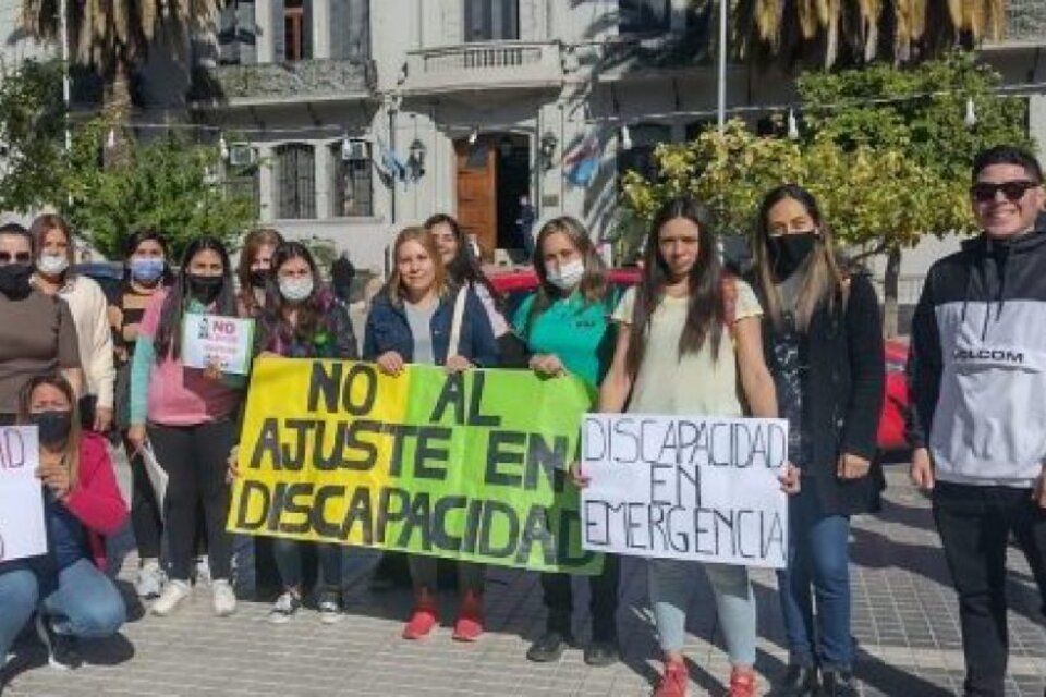 Prestadores del servicio de asistencia a la discapacidad se movilizaron este lunes en plaza 25 de Mayo para volver a reclamar por los pagos atrasados y en rechazo al ajuste en discapacidad. El conflicto, a nivel nacional, surgió porque las obras sociales que dependen de la Superintendencia de Salud no pagan a los profesionales.