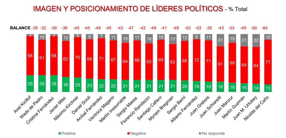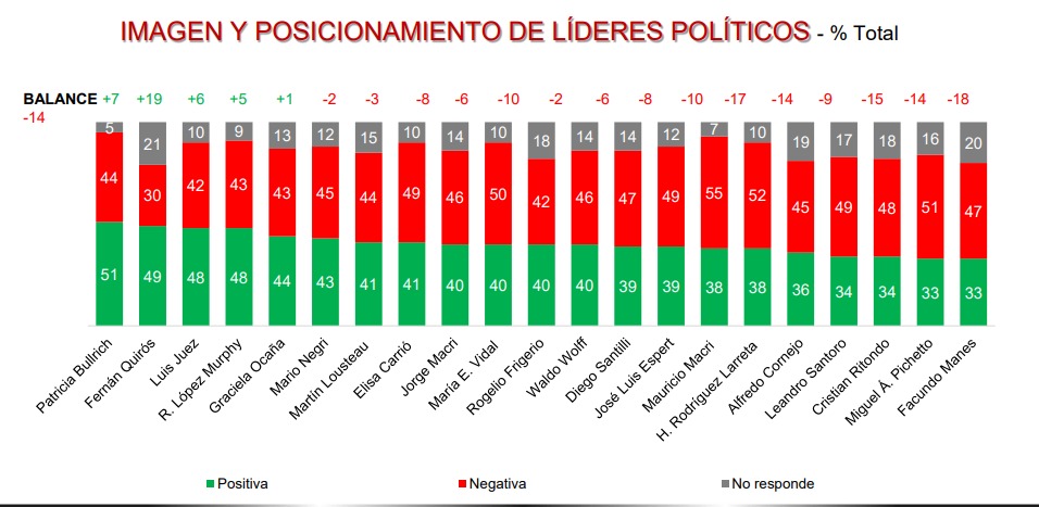 Patricia Bullrich se mantiene en el primer lugar en imagen positiva y es la más valorada dentro de su espacio. Dentro del Frente de Todos el mejor posicionado es Leandro Santoro.