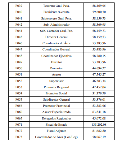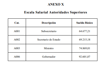 En el decreto 1.823 del 20 de septiembre de 2022, que fue ratificado por la ley 10.562, el sueldo básico del Gobernador quedó en $92.601, mientras que una categoría 24 llegó a $39.916.