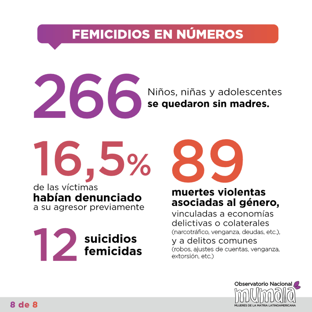 Entre lo datos destacados: 266 niños y adolescentes se quedaron sin madre. Argentina tiene una tasa nacional de 0,9 femicidios cada 100.000 mujeres.