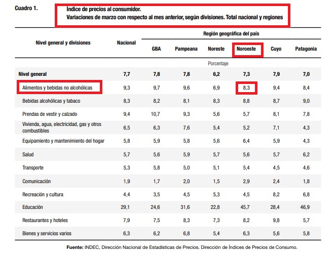 Solo en marzo, los alimentos aumentaron un 8,3% en el NOA, que incluye a La Rioja.