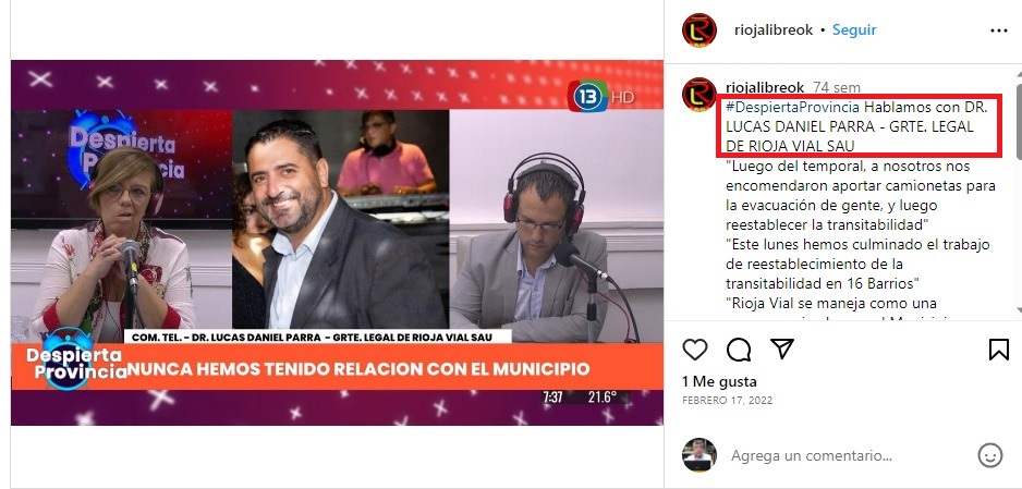 Rioja Vial es una empresa manejada por el gobernador Ricardo Quintela. Es un firma estatal creada en la administración del ex mandatario Luis Beder Herrera.