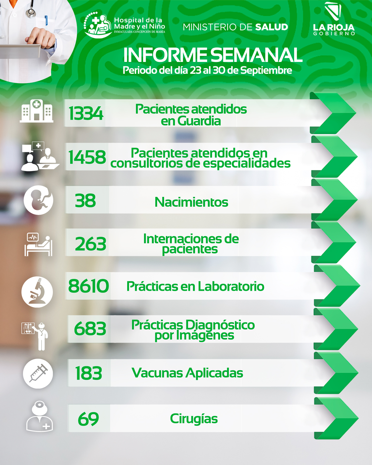 Este informe semanal reafirma el compromiso del Hospital de la Madre y el Niño con la salud de la población riojana, brindando atención de calidad y abarcando diversas especialidades y servicios de alta complejidad.