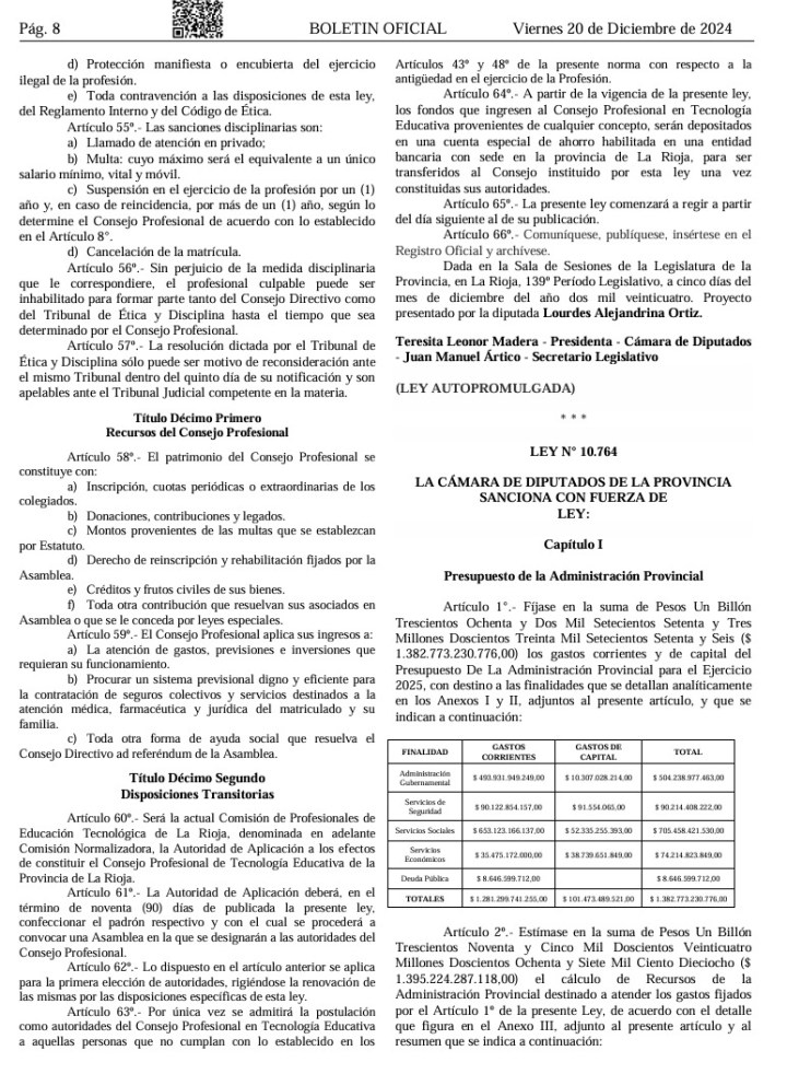 La ratificación quedó formalizada en el artículo 27° de la normativa, promulgada el 17 de diciembre de 2024 mediante el Decreto N° 1.892 firmado por el gobernador Ricardo Quintela. Esta medida es presentada como parte de una estrategia para optimizar el manejo de recursos públicos y atraer inversiones privadas a sectores clave de la economía riojana, como la producción agrícola y ganadera.