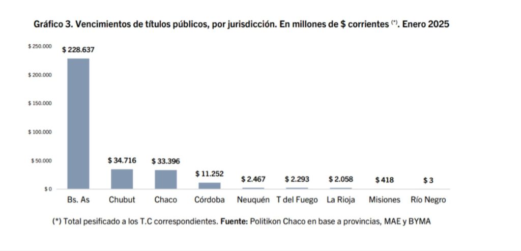 Mientras tanto, la provincia de Buenos Aires concentra el 72,5% de los vencimientos totales, seguida por Chubut y Chaco, lo que indica una marcada desigualdad en la carga de deuda entre las diferentes jurisdicciones. La Rioja, junto con otras provincias, deberá buscar alternativas que le permitan gestionar sus vencimientos y garantizar un futuro financiero más sólido.