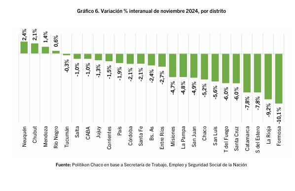 La provincia ha perdido un 9,2% de sus empleos en el sector privado en comparación con noviembre de 2023, lo que representa una grave situación laboral, a pesar de un reciente crecimiento mensual del 0,4%.