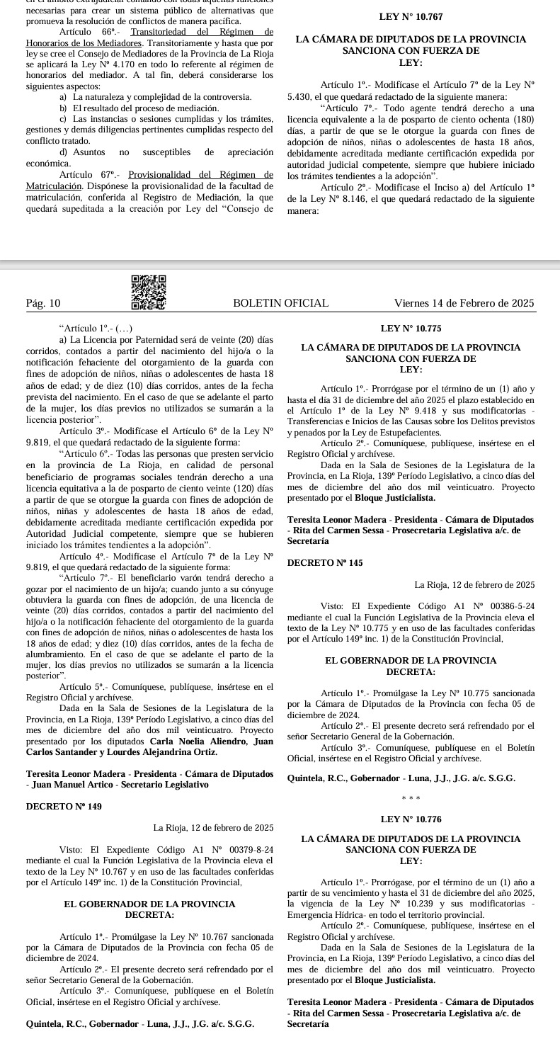 En un avance significativo hacia la protección de los derechos laborales en la provincia, la Cámara de Diputados de La Rioja ha sancionado la Ley N° 10.767, que introduce importantes modificaciones en las licencias laborales relacionadas con la adopción. La ley fue aprobada el 5 de diciembre de 2024 y promulgada por el Gobernador Ricardo Quintela el 12 de febrero de 2025.