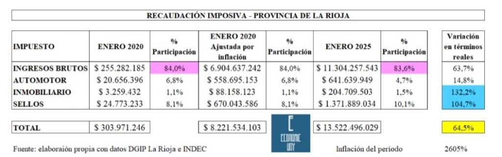 Además, se observa que otros impuestos, como el de ingresos brutos, no solo afectan a las empresas, sino que también repercuten en los consumidores, quienes enfrentan precios más altos. En este contexto, el experto concluye que es urgente una revisión integral de la estructura tributaria de La Rioja para fomentar un crecimiento más equilibrado y sostenible, que no dependa de tributos que distorsionan la economía.