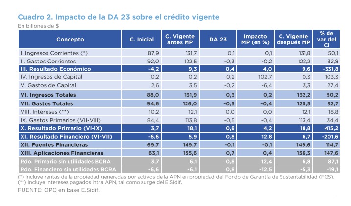 En el balance final, el informe de la Oficina de Presupuesto del Congreso muestra que la medida busca consolidar el superávit financiero y primario de la Administración Nacional, con el objetivo de continuar la política de austeridad fiscal.