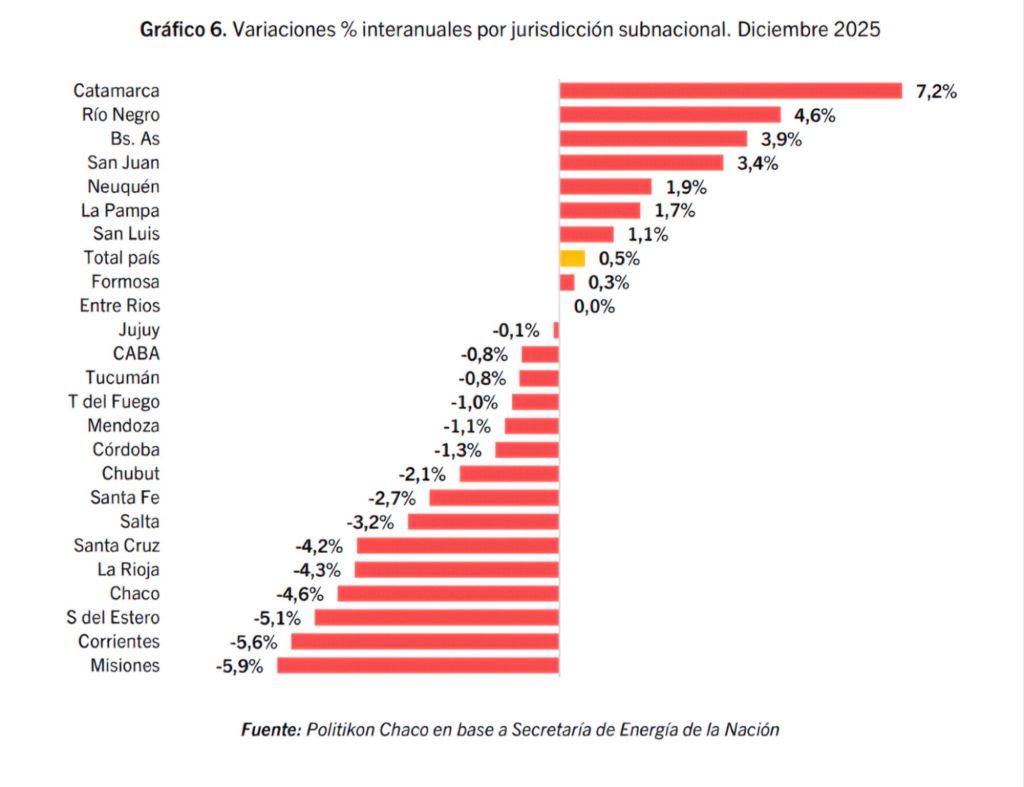 Este desempeño negativo contrasta con el escenario nacional, donde el volumen de ventas mostró una variación positiva del 0,5%. De esta manera, La Rioja se ubicó dentro del lote de quince jurisdicciones que finalizaron el año con índices a la baja, quedando lejos de los distritos que encabezaron la recuperación como Catamarca (+7,2%) o Río Negro (+4,6%).