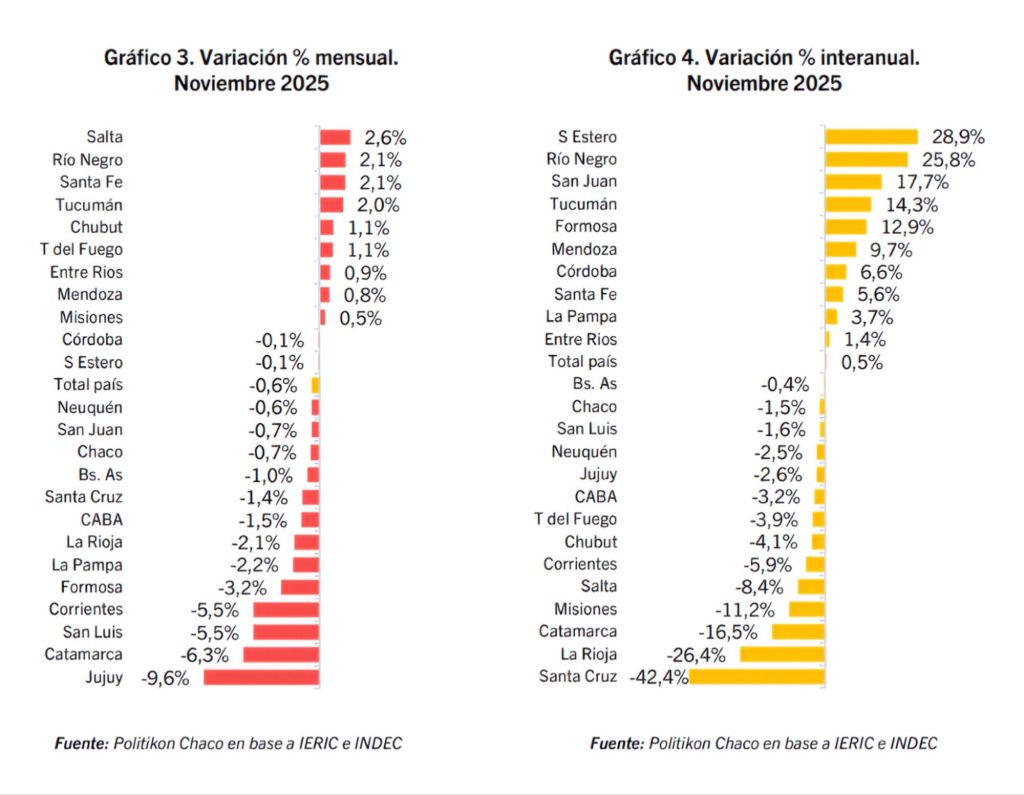 Ninguna otra jurisdicción del país sufrió una sangría semejante. Mientras el promedio nacional muestra una baja acumulada del 14,8% en el mismo período, La Rioja supera por amplio margen a otras provincias golpeadas como Santa Cruz (-69%) y Misiones (-37,1%).