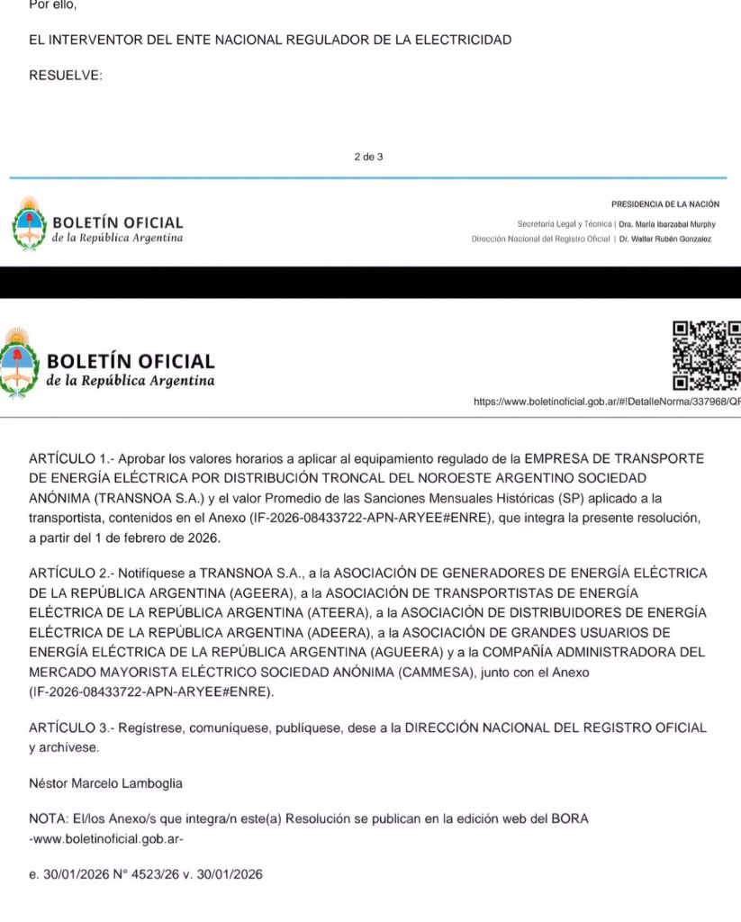 El ENRE aprobó un ajuste del 2,55% en los valores que percibe TRANSNOA a partir de febrero. La medida responde a la actualización por inflación de los últimos meses y suma formalmente al esquema tarifario la interconexión clave para el abastecimiento energético de la provincia.