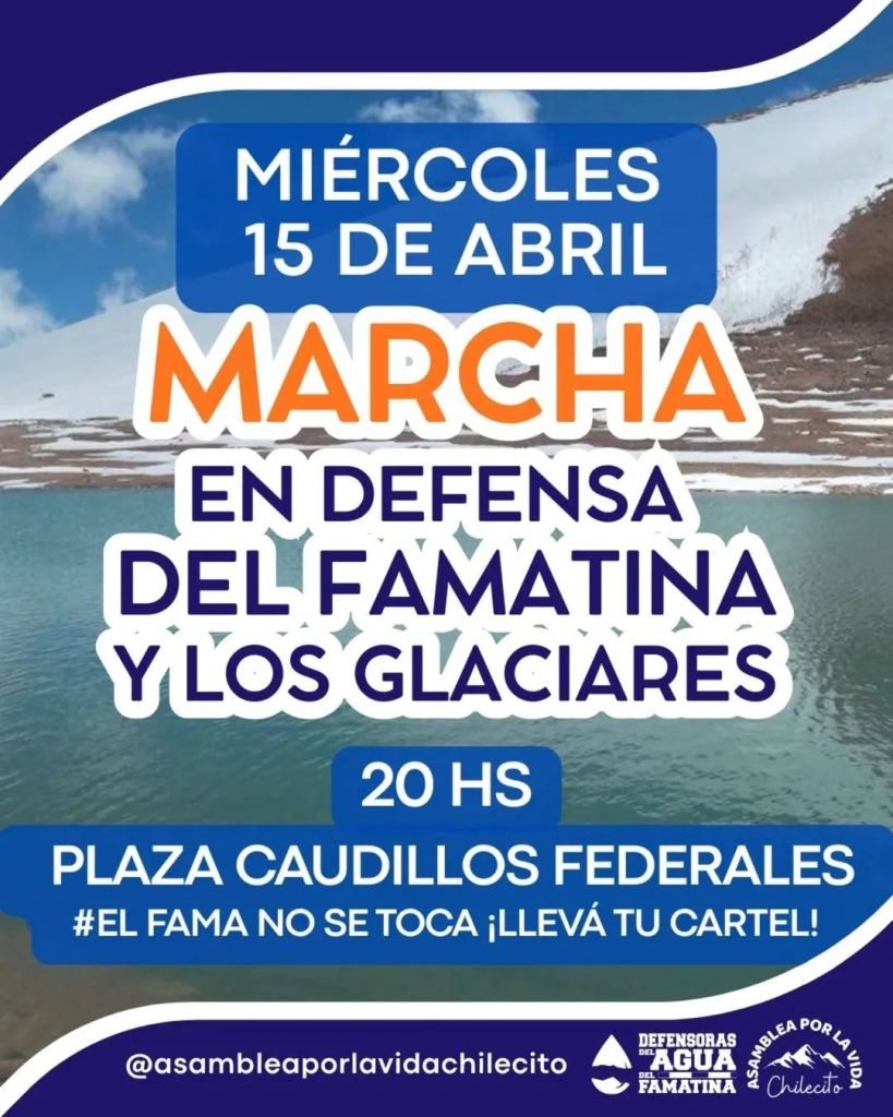 Vecinas y vecinos se reunieron el miércoles 8 de abril en asamblea pública para rechazar la reforma a la Ley de Glaciares y defender las fuentes de agua del Famatina. Con marcha alrededor de la plaza y cuerda de candombe, decidieron convocar a una movilización masiva para el próximo miércoles desde las 20 horas en la Plaza Caudillos Federales.