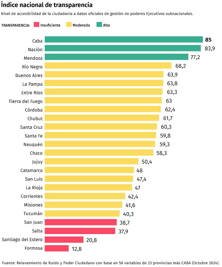 El relevamiento ubica a La Rioja con un puntaje del 46,9%, en la categoría de transparencia moderada. Formosa, Santiago del…