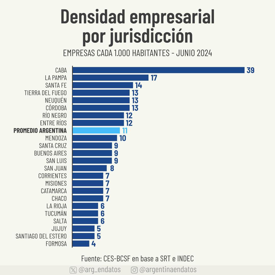 Con solo 6 empresas cada 1.000 habitantes, La Rioja se posiciona por debajo del promedio nacional, al igual que otras…