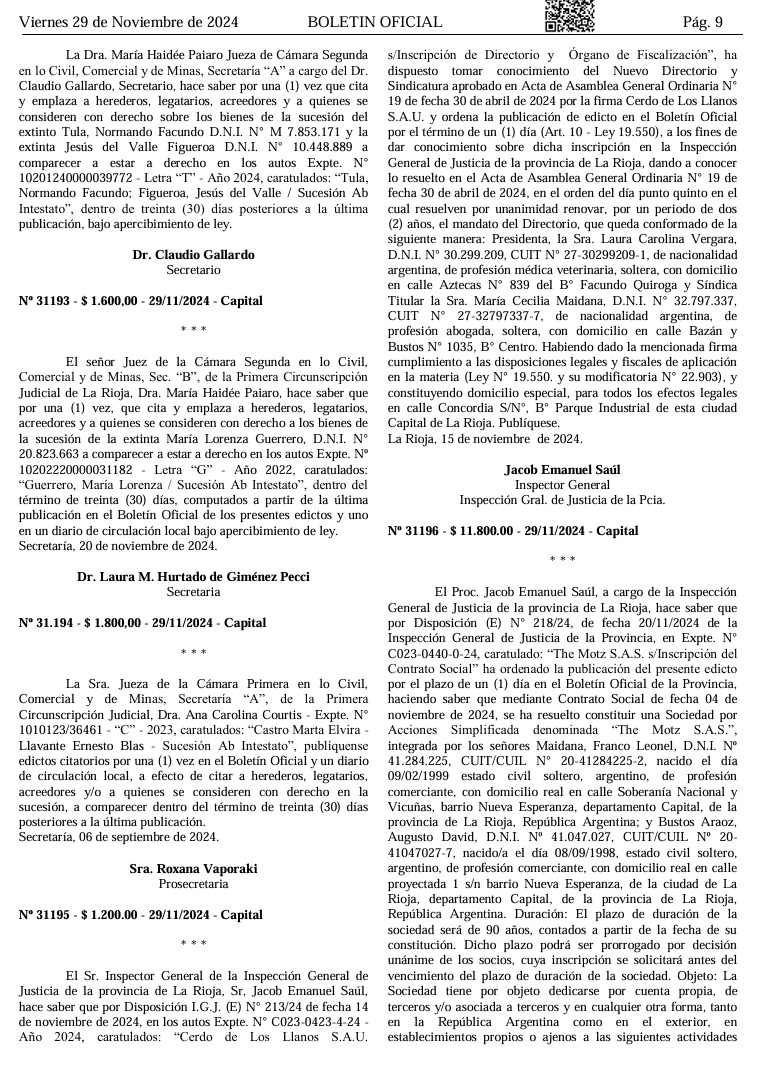 La Inspección General de Justicia de La Rioja aprobó la renovación del directorio y la sindicatura de Cerdo de Los…