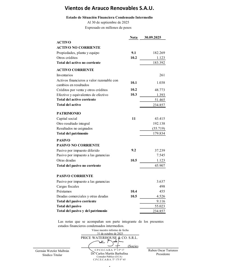 Vientos de Arauco Renovables S.A.U., la empresa riojana de energía eólica, cerró el tercer trimestre de 2025 con una pérdida…