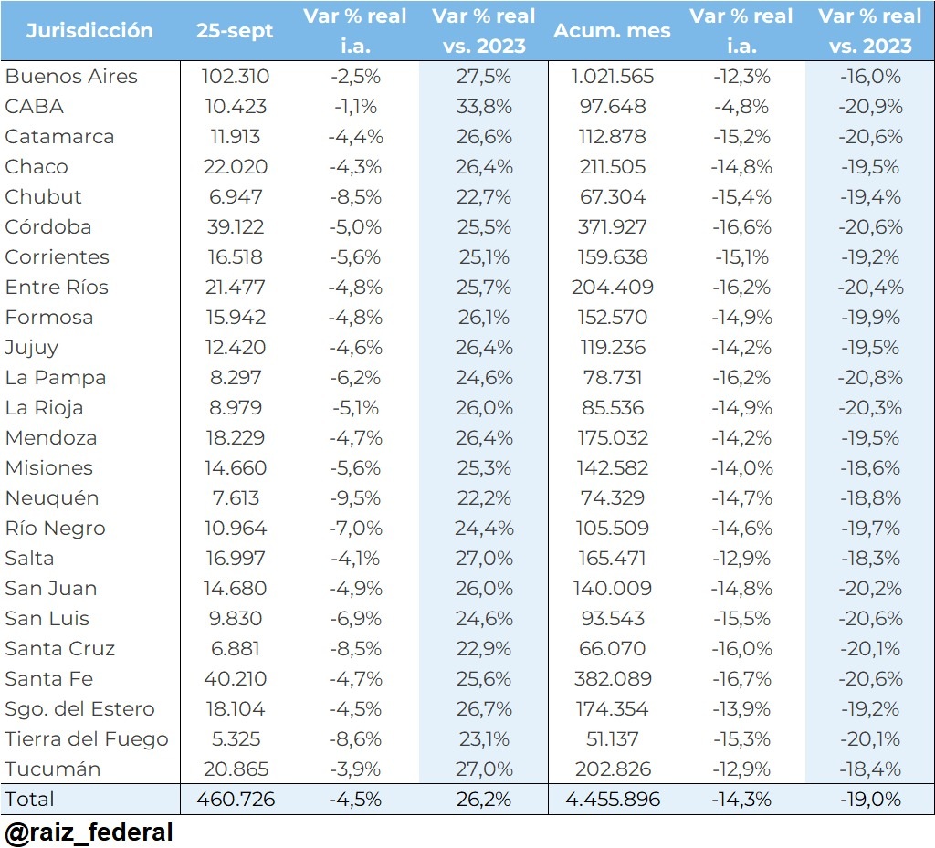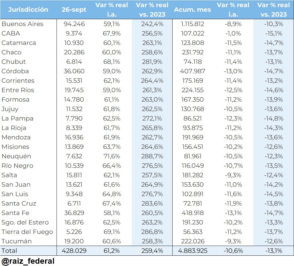 En lo que va del mes, el Tesoro Nacional transfirió $428.029 millones a las jurisdicciones provinciales, pero en términos reales…